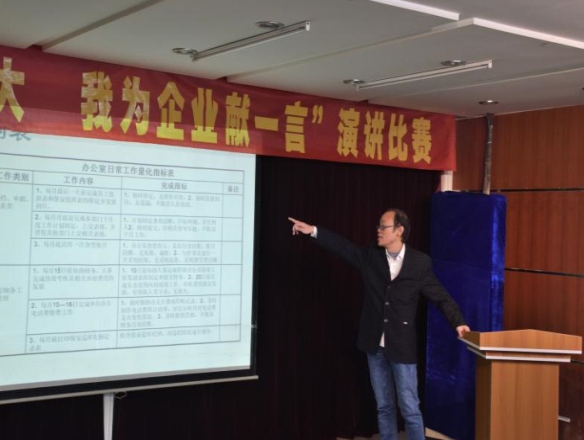 演講比賽現(xiàn)場氣氛熱烈,比賽中選手們緊扣演講主題,結合自身工作實際對身邊的典型人物事跡和對公司未來發(fā)展規(guī)劃、經(jīng)營管理創(chuàng)新等方面提出個人建議,通過演講形式娓娓道來,一篇篇內涵豐富、聲情并茂的演講,充分展示了我司員工積極向上的精神風貌,激發(fā)了員工的愛崗敬業(yè)熱情。選手們極富感染力的演講讓現(xiàn)場觀眾備受鼓舞。