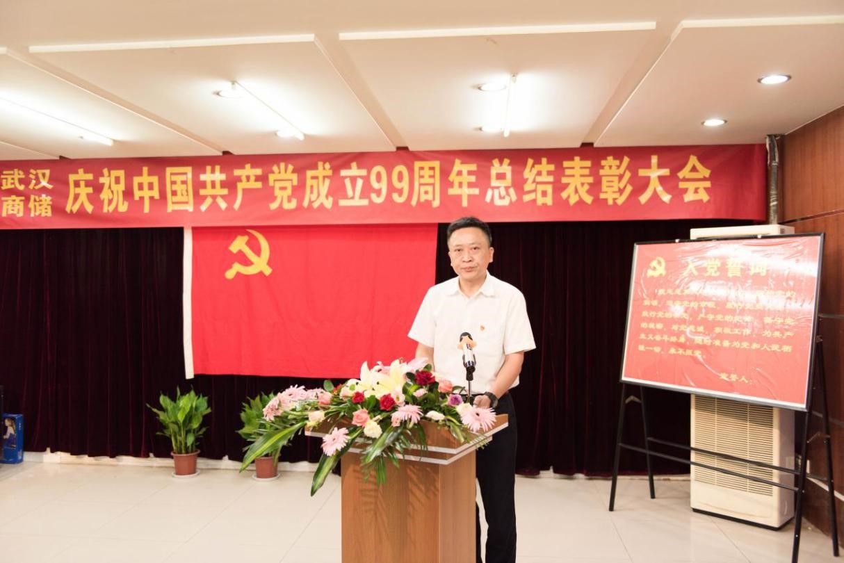 6月30日上午,武漢市商業(yè)儲(chǔ)運(yùn)有限責(zé)任公司隆重召開(kāi)慶祝中國(guó)共產(chǎn)黨成立99周年總結(jié)表彰大會(huì),會(huì)議進(jìn)行了溫誓詞紀(jì)念活動(dòng),表彰了公司先進(jìn)基層黨組織、優(yōu)秀黨員和優(yōu)秀黨務(wù)工作者,通報(bào)獎(jiǎng)勵(lì)“我的抗疫故事”優(yōu)秀征文,安排布置2020年公司黨建工作、意識(shí)形態(tài)工作和黨風(fēng)廉政工作。公司黨委委員、副總經(jīng)理余光輝主持會(huì)議,公司全體領(lǐng)導(dǎo)班子成員、中層管理人員、各黨支部書(shū)記、黨務(wù)工作者、黨員代表共50人參加了會(huì)議。